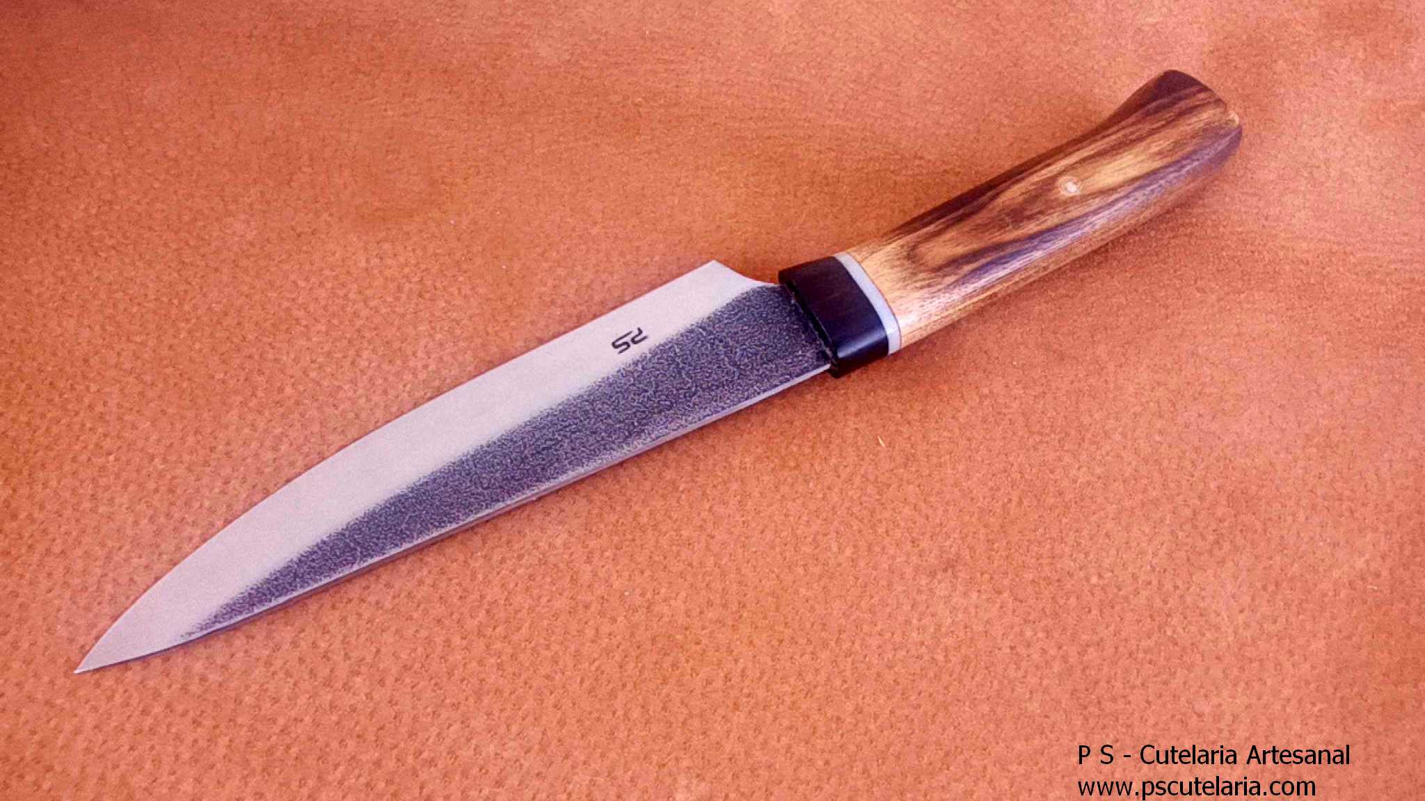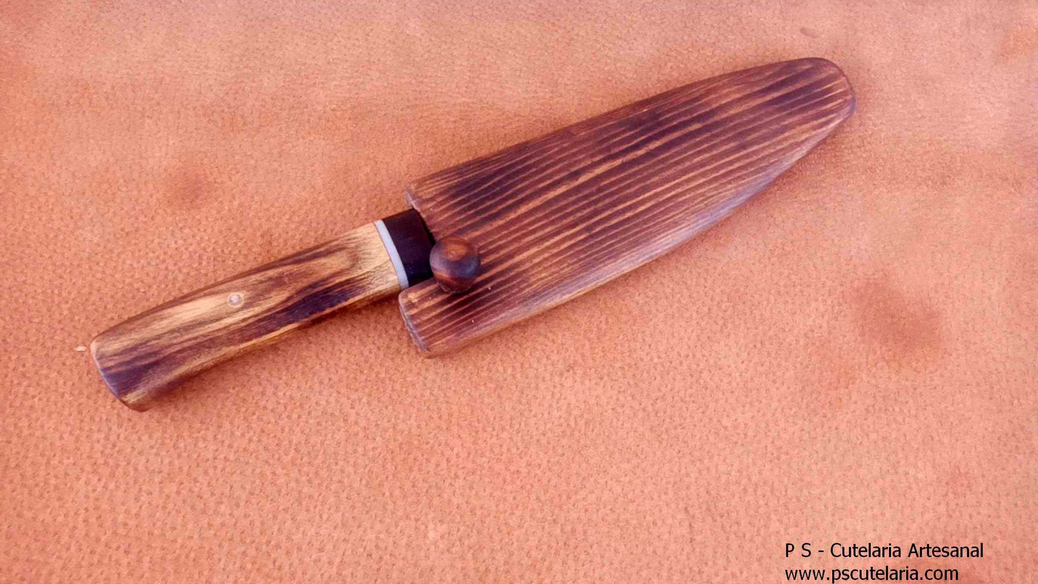 Aço Carbono K720 Cabo em Castanho / Pau-Santo Comprimento Total: 28 cm Comprimento da Lamina (até ao cabo): 16,7 cm Espessura da Lamina (junto ao cabo): 3 mm Largura da Lamina (junto ao cabo): 3,5 cm Bainha em Madeira